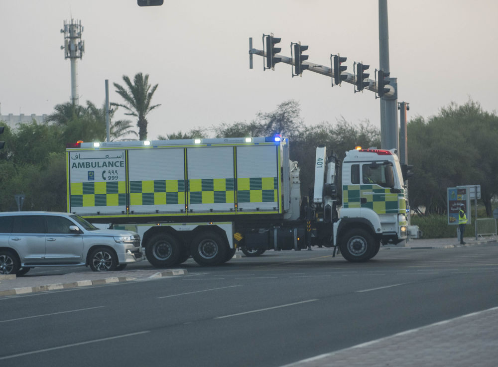 9月9日,在卡塔尔都门多哈,一辆急救车到达事发现场隔邻。新华社发(尼库摄)